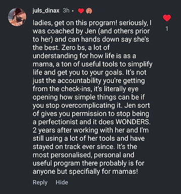 Hi, I'm Jen. I've helped tons of mums get incredible results for over a decade to lose weight, build muscle, change their slightly-messed-up relationship with food and transform their health whilst juggling busy lives and kids and without losing their shit.